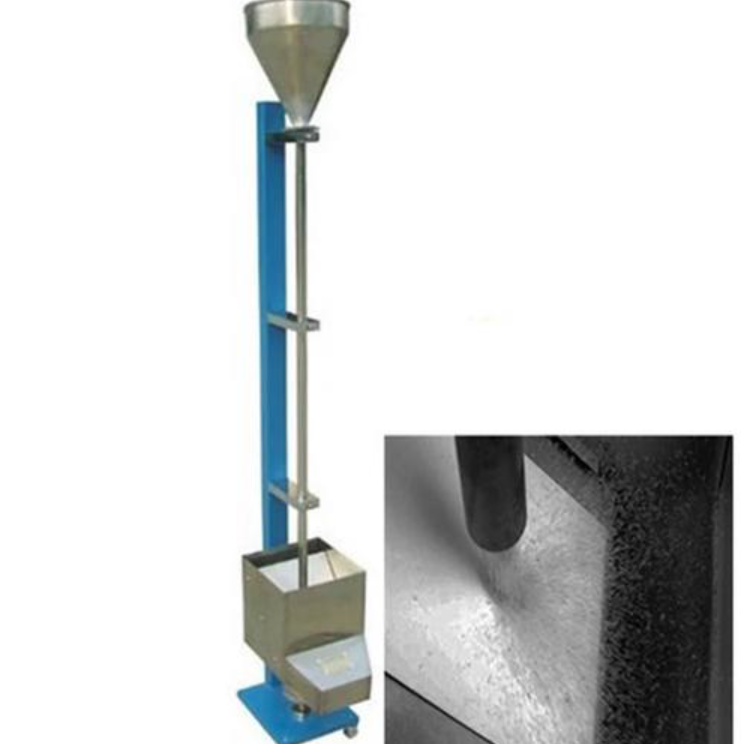 落砂耐磨试验器是用来测试在标准条件下涂层的耐磨性。本方法测试涂层的耐磨性是将磨料通过导管从规定的高度落到已涂装的试板上直至试板底材露出可现。以磨耗单位膜厚的磨耗量来表示试板上涂层的耐磨性。本仪器的测试方法符合美国工业标准AS968-83中落砂法试验涂层的耐磨性和建筑工业行业标准JG/T 133-2000建筑用铝型材、铝板碳涂层对耐磨耗性进行测试的要求。