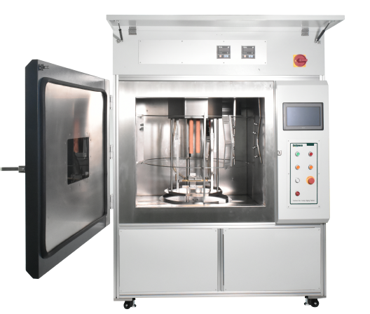 碳弧灯老化试验箱的核心是利用碳弧灯模拟太阳光中的紫外线、可见光和红外线。它通过控制箱内温度、湿度和光照强度,让材料在可控的“加速老化”环境中暴露,从而快速预测材料在户外长期使用中的寿命。(简单说:用“人工太阳”加速材料老化,比自然老化快数倍)