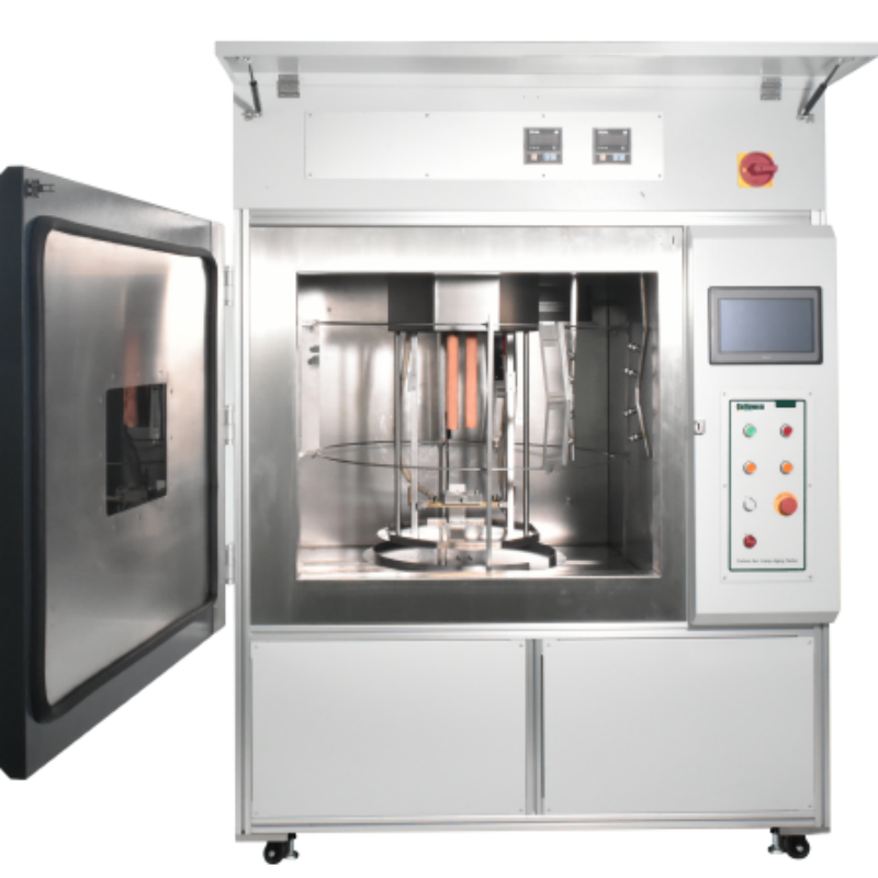 3、碳弧灯老化试验箱:包含碳弧灯、温湿度控制系统、喷淋系统、样品支架等。