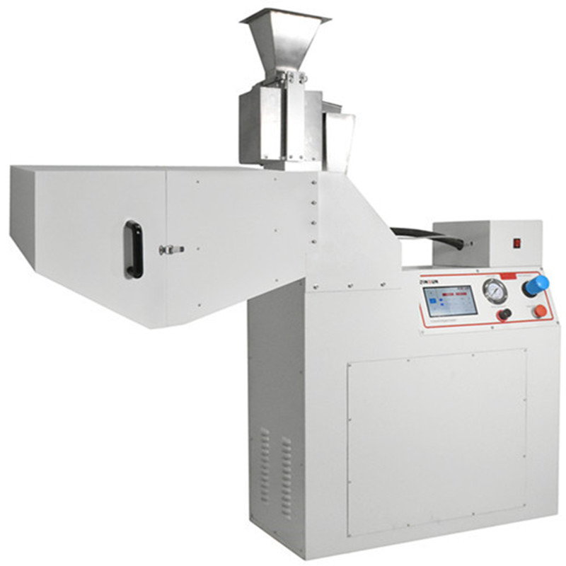 1.一定重量的砂砾通过振动弹入进料器。由于进料器下部的高速气流高速运动形成了一个真空,因此碰撞介质就被吸入射枪组件中,而后被喷射气流射向测试样件。在介质撞击测试目标后,介质就掉入砂砾收集箱内。试验机使大量带有锋利边缘的钢丸或碎石在短时间内撞击样品表面,整个试验在可控温度下进行。冲击结束后,用胶带去除松散涂层,露出样板上残留的石击点痕迹,通过分析样品的破坏程度判断其抗石击性能的优劣。